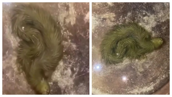 Hijau..rambut tipis di sekujur tubuh..masih ada ular? | Seekor “ular hijau berbulu” misterius, ditemukan di rawa-rawa di Thailand