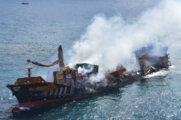 Ilmuwan universitas telah menemukan bahan kimia yang menyebar di laut oleh kapal yang terbakar di pelabuhan Kolombo.