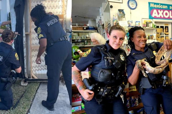 Kemudian mereka menyelamatkan seekor boa ekor merah yang bersembunyi di sofa. Mereka pun mengunggah kejadian tersebut ke media sosial.